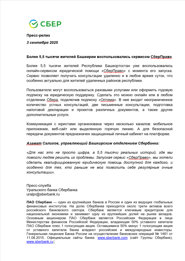 «Для нас это не просто цифра, а 5,5 тыс. реальных историй, где мы помогли людям решить их проблемы. Запуская сервис “СберПраво”, хотели сделать квалифицированную юридическую помощь доступной для каждого, особенно для тех, кто раньше не мог позволить себе регулярные очные консультации».